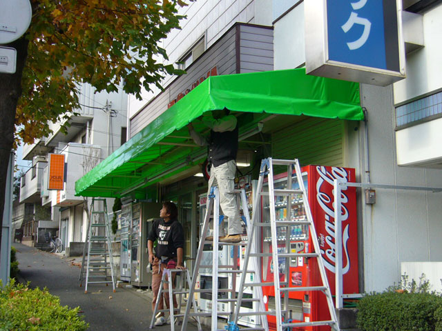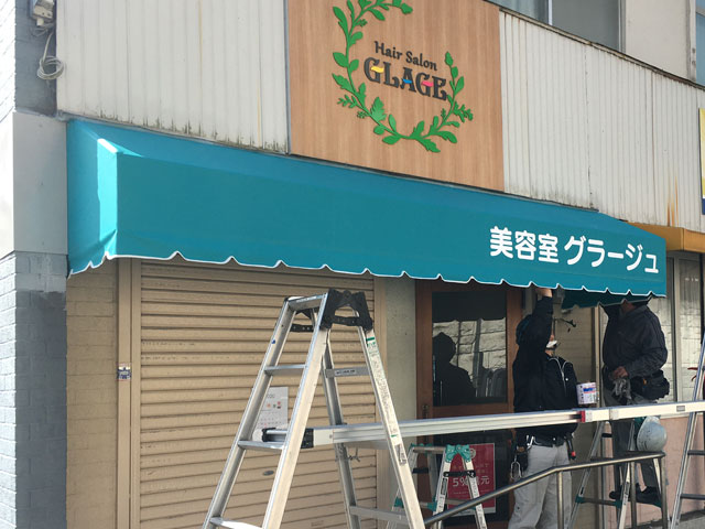 アヤベルが看板製作したテント・オーニングの一例をご紹介します。テント・オーニングは高い品質によって長年ご愛用頂ける耐久性、洗練されたデザインなど多くのお客様にご好評頂いております。