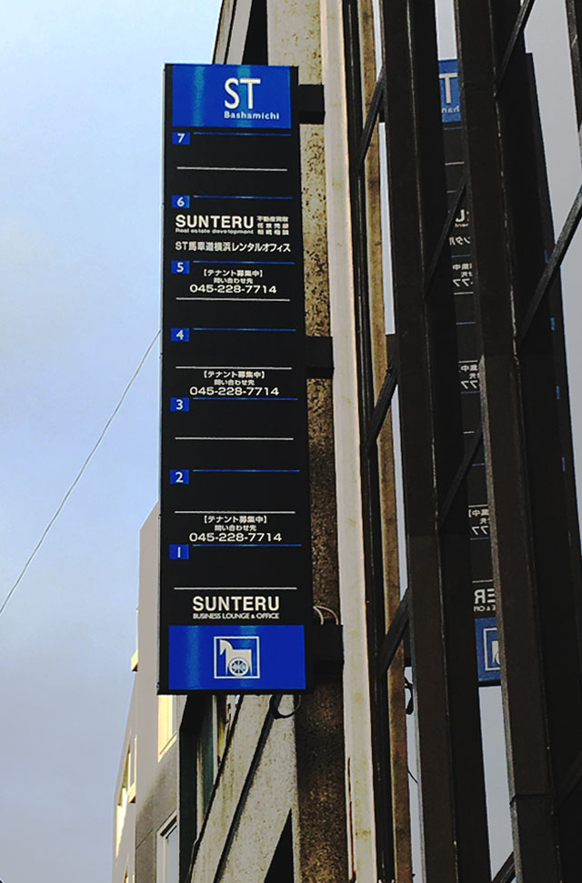 アヤベルが看板製作した袖看板の一例をご紹介します。側面に垂直に突き出る形で設置する袖看板は歩行者や道路の走行車が遠くからでも視認しやすいお客様にアピールします。