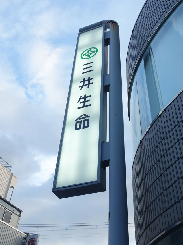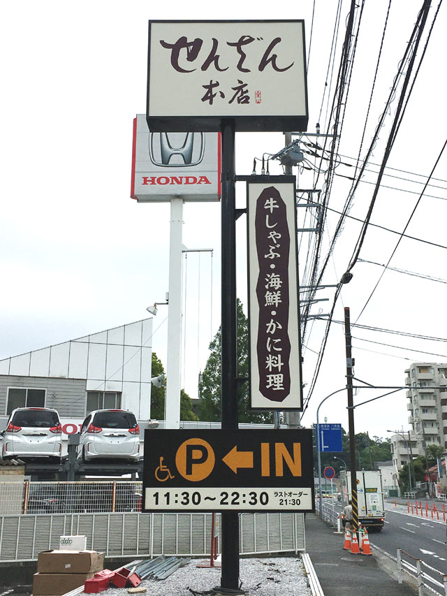 アヤベルが看板製作したポールサインの一例をご紹介します。ポールサインは通行者よりの敷地に通行者進行方向垂直に設置され、遠方からも認識され店舗の存在をアピールできるます。